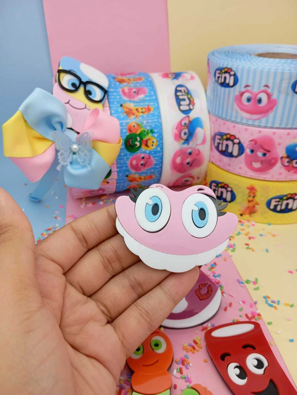 Produzida em acrilico, o aplique é ideal para, trabalhos em chinelos, porta guardanapos, aplicação em tecidos, laços, tiaras, lembrancinhas e artesanatos em geral.